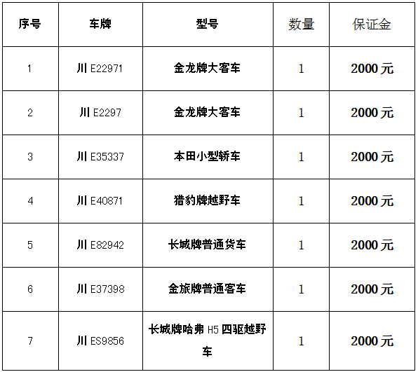 四、凡有意競買者請于2019年1月21日17:00以前將保證金匯入我公司指定賬戶(保證金以到賬為準),并持匯款依據(jù)及有效證件到我公司辦理競買手續(xù)和開通網(wǎng)絡競買權(quán)限。(戶名:瀘州市四方拍賣有限公司,賬號:51001637708051501502 開戶行:建行瀘州世紀城支行)。